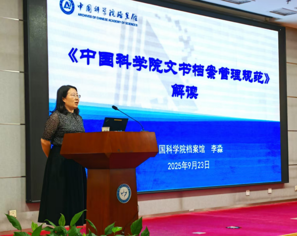 中国科研实验室理化研究所综合处处长李婉月以科研档案管理为主题作报告,内容涵盖了科研档案工作的基本要求、建立档案工作体系、制定个性化归档范围、把控归档文件质量和提升档案信息化水平等。